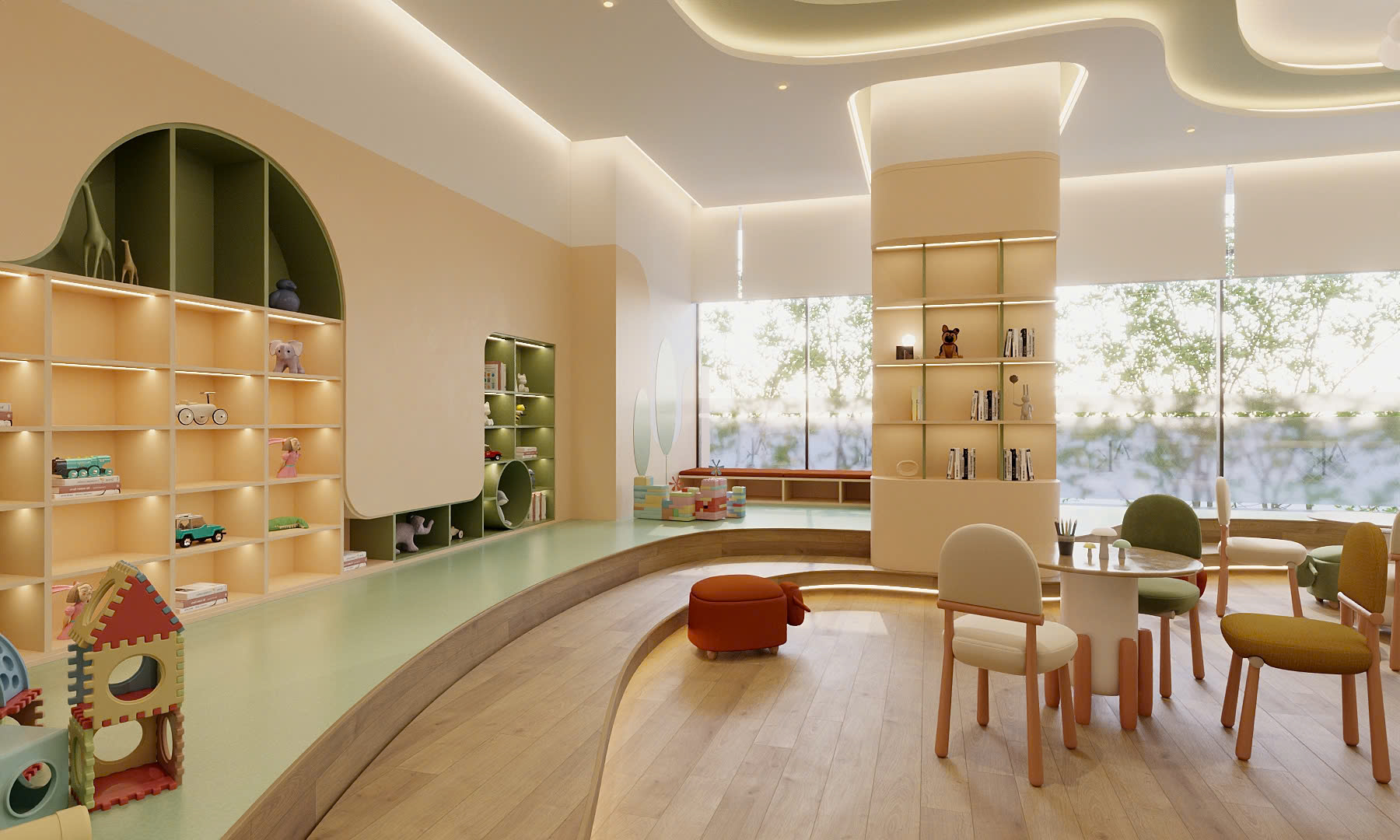 Gia đình/Cộng đồng: Nhà trẻ, khu vui chơi trẻ em, sân vườn trung tâm, đường dạo bộ.